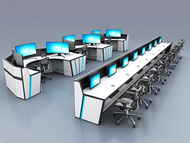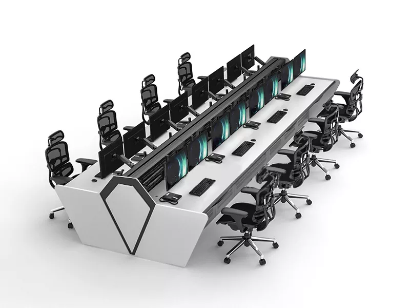 A nap 24 órájában, a hét minden napján, a hét minden napján megszakítás nélküli diszpécser forgatókönyvek esetén a felügyeleti konzolunk többképernyős megjelenítő eszközöket, vezérlőterminálokat és különféle csatlakozókábeleket képes befogadni, így a személyzet gyakori állás nélkül végezheti el a teljes folyamatot, jelentősen lerövidítve ezzel a parancsreakció idejét. Bonyolult diszpécser forgatókönyvek esetén támogatja az egyenes, L-alakú, U-alakú és szabálytalan alakú szerkezetek rugalmas kombinációit, maximalizálja a helykihasználást, miközben biztosítja az akadálymentes látóteret, elősegíti a hatékony csapat együttműködést, és alapvetően javítja a diszpécsere hatékonyságát.