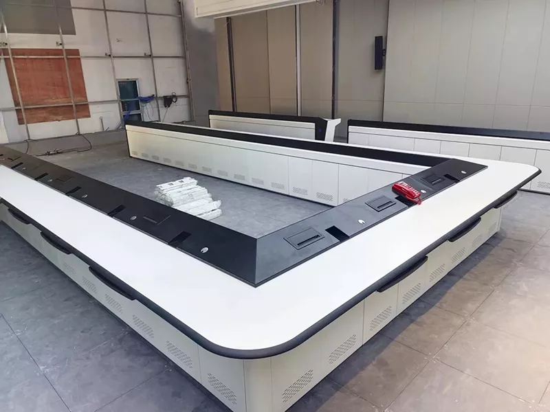 A termék körbeölelő U-alakú szerkezettel rendelkezik, amely lehetővé teszi a felügyeleti berendezések központosított telepítését, több látószögű információmegjelenítést és hatékony együttműködést. Széles körben használták kormányzati parancsnoki központokban, vállalati megfigyelő helyiségekben, városi biztonsági rendszerekben és energiaelosztó központokban.